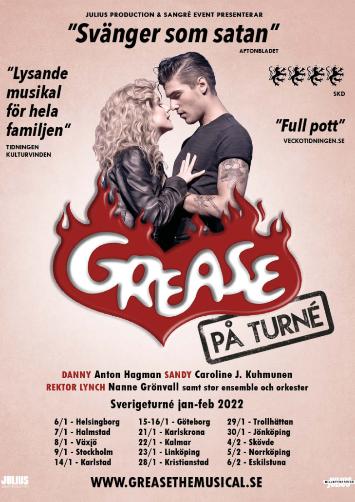Musikalen Grease, den rockiga kärlekshistorien, får varje dansnerv att spritta i kroppen! När den svenska versionen av Grease sattes upp på Nöjesteatern åkte brylkrämen, skinnjackorna och dansskorna på.